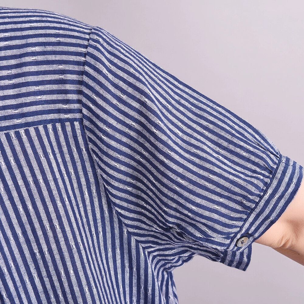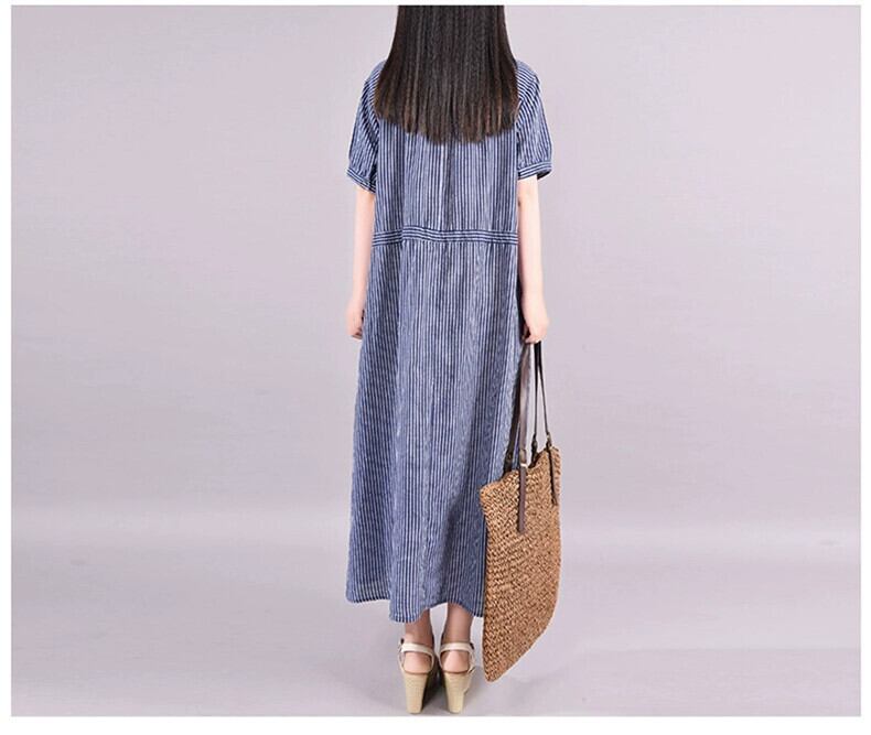 永貿易輸出ビッグブランドテールグッズカットラベル女性のルーズリネンシャツロングスカートスタイル半袖ストライプ綿とリネンのドレス コットン sine94094978140