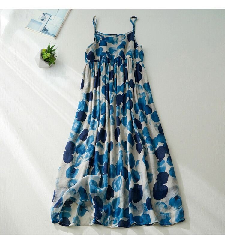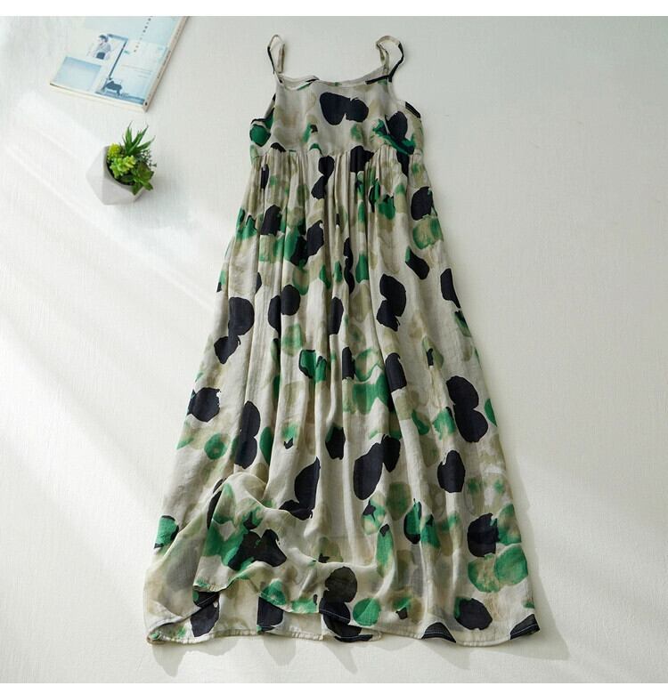 クリアランスリーク~エセラミーワンピース 大きいサイズ アーティスティック 水玉 ノースリーブ コットンリネン リネン ワイドベスト ロングスカート 大きめサイズ sine75327899537
