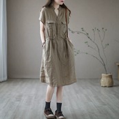 割引 eign trade カットラベルピックアップクリアランスレディースコットンとリネンウエストミッドレングススカートカジュアルリネンシャツドレス sine65138925304