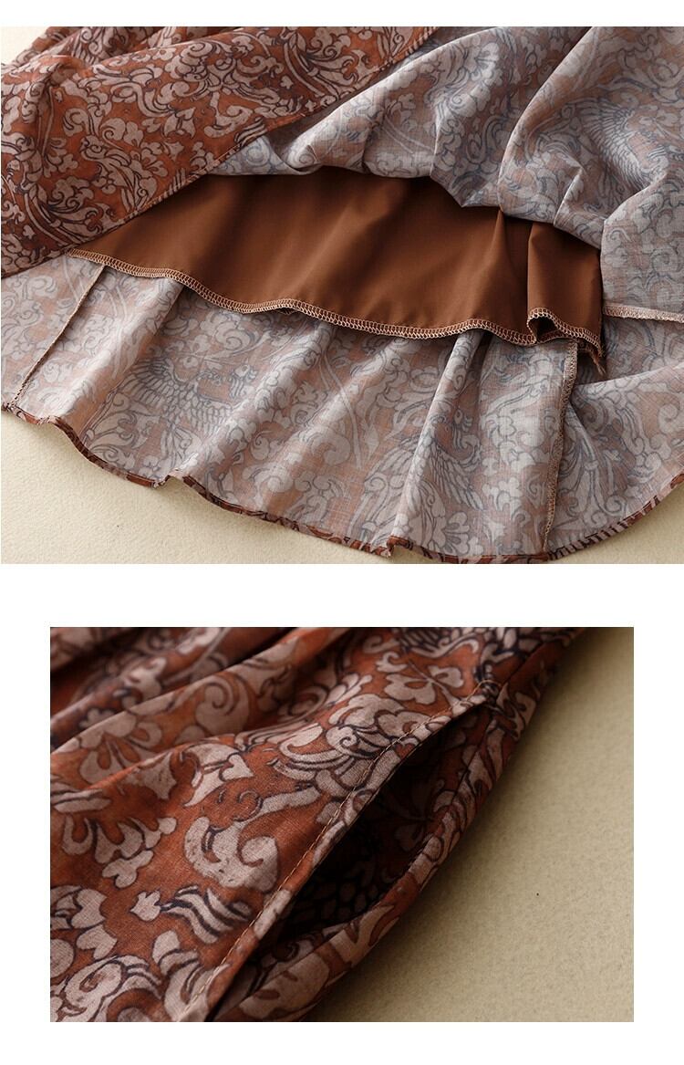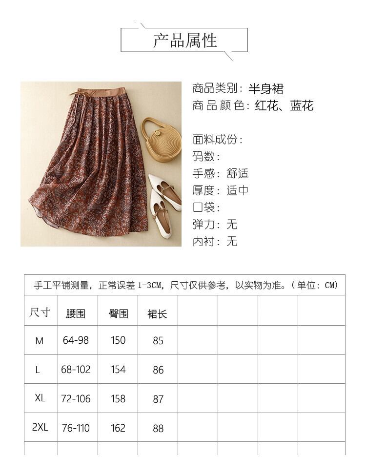 ディスカウントストアショッピングモールの女性のレトロラミー花柄スカートハイウエスト巾着コットンとリネンの大きな裾Aラインスカート sine94253488709