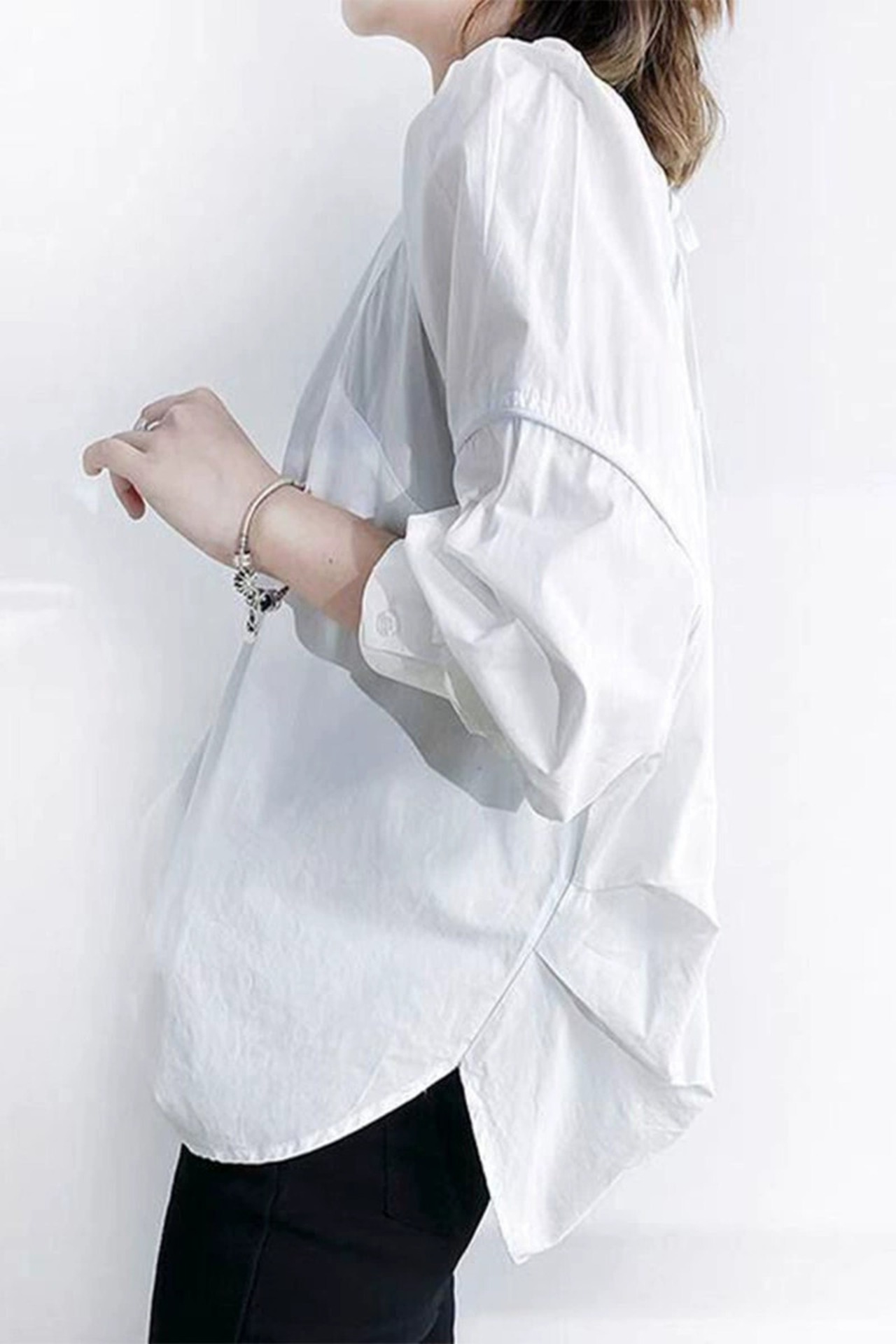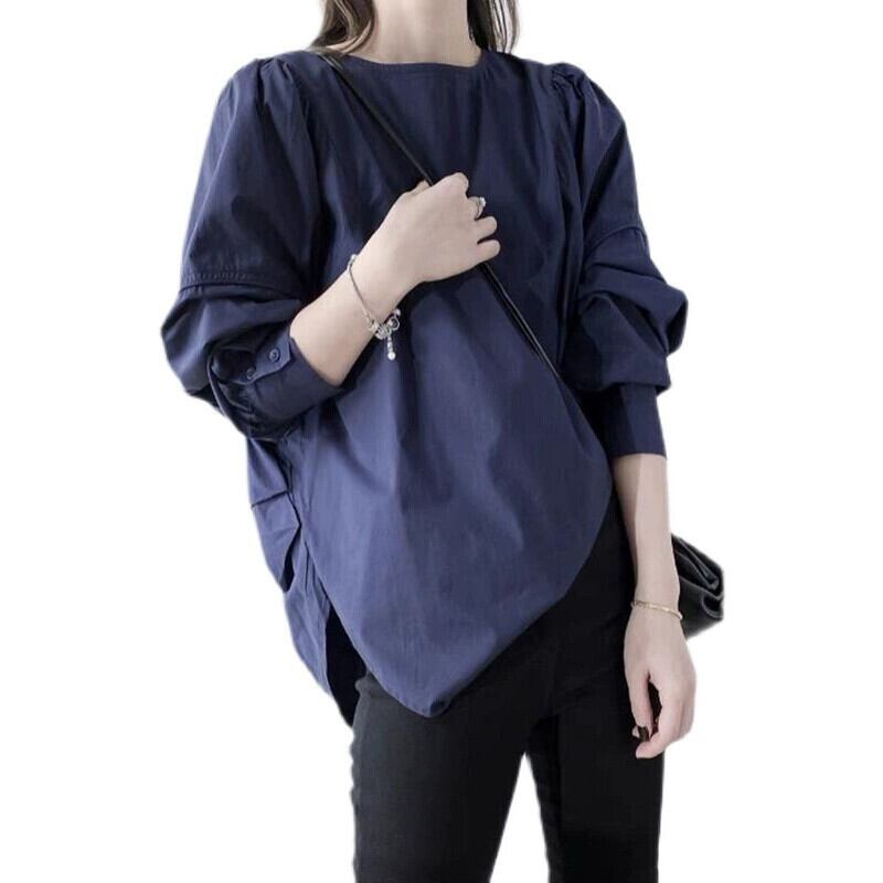 永貿易輸出尾品撤退レディースファッショナブルカジュアルコットンとリネン長袖シャツ大きいサイズ無地リネン Tシャツトップス ロング 大きめサイズ ソリッドカラー sine8617639621
