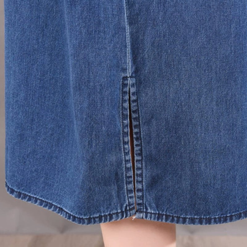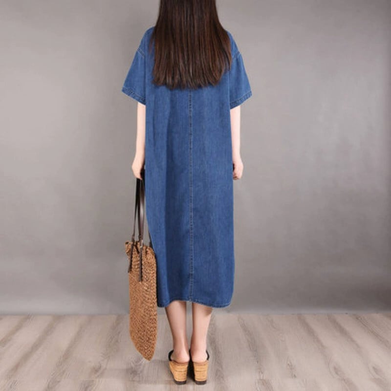 ディスカウントストアショッピングモール撤退カットオフレディースソリッドカラーラペルシャツドレスルーズスタイル半袖デニムドレス sine1837300690
