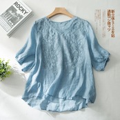 クリアランスリーク〜カウンタービッグブランドカットラベルテールシングルレディース刺繍Vネックラミートップ半袖コットンリネン美しいシャツ レッド sine99581065630