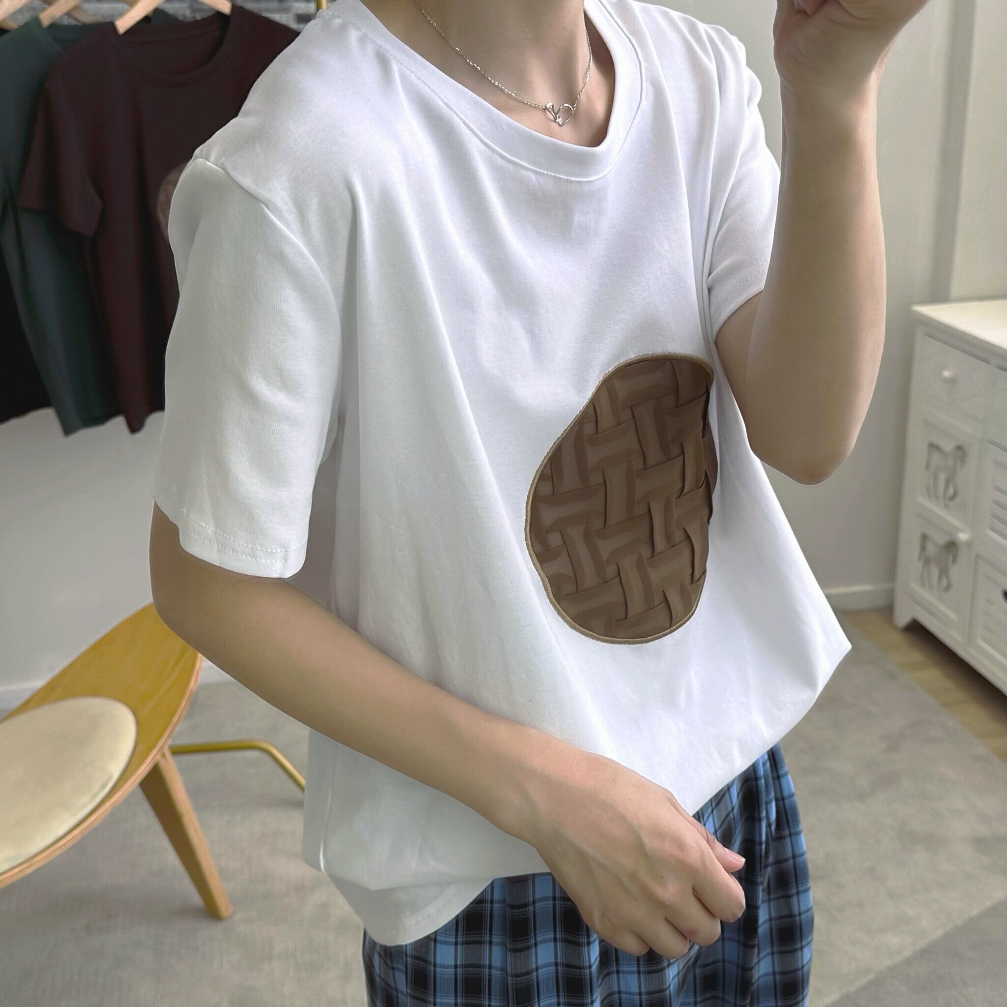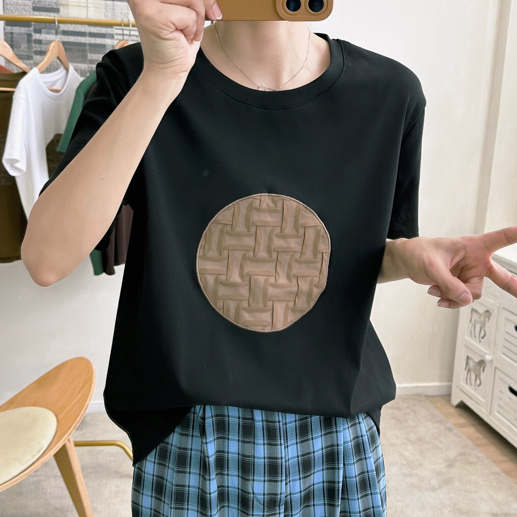 eign trade ese オリジナルハイエンドブランドレディースルーズラウンドネック Tシャツカジュアルシンプルレトロプリント半袖トップ夏 サマー 夏物 Oネック sine8927083717