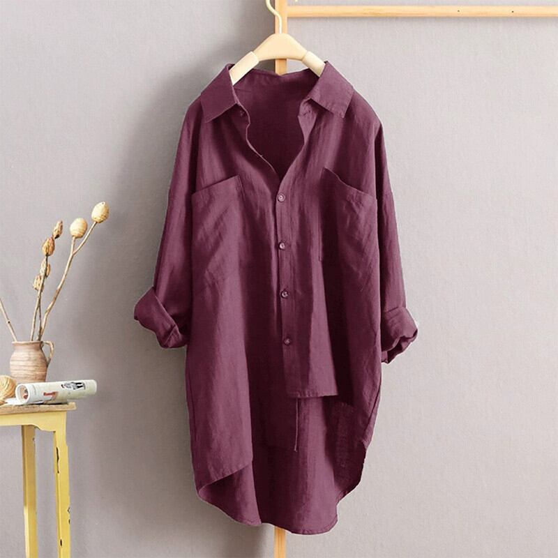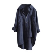 クリアランス漏れ ~ カウンターからの女性の不規則なリネントップス、ゆったりとしたカジュアルなミドル丈のコットンとリネンの長袖シャツ ロング sine57154505387