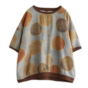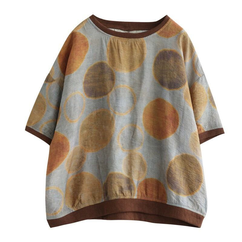 カットラベルショッピングモール除去レディースアーティスティックポルカドットコットンとリネン半袖Tシャツルーズレトロスリムラミートップ薄い sine73190288440