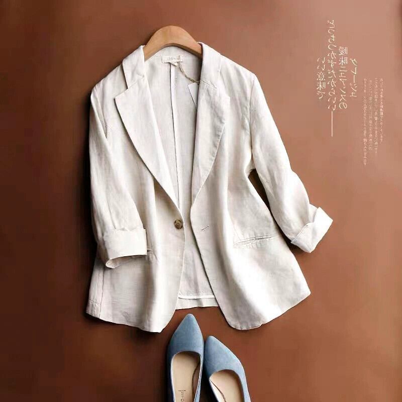 イタリア eign trade オリジナル カット ラベル レディース クリアランス リネン スモール スーツ ジャケット カジュアル ese スタイル 7 分袖 コットンとリネン トップ sine73053515959