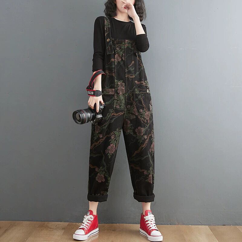 2022 夏デニムハーレムパンツ女性のルーズ大きいサイズスリムレトロプリントワンピース股ハーレムパンツ 大きめサイズ サマー 夏物 sine21327012007