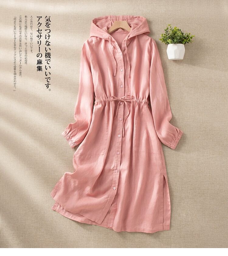 eign trade ese オリジナル シングル レディース 大きいサイズ フード付き ウインドブレーカー ジャケット ルーズ ウエスト タイ ミッドレングス コットンとリネン 日焼け止め カーディガン 大きめサイズ sine267244817