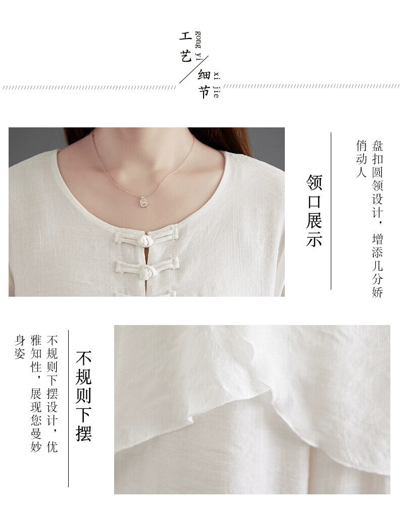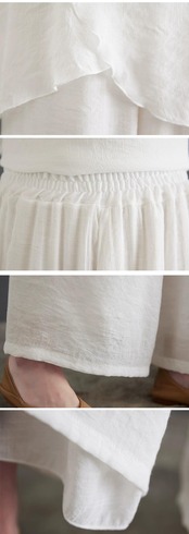 中国風の禅ダンス服白い綿とリネンのスーツ女性ルーズ妖精禅長袖トップワイド脚パンツとスカート 2 点セット ロング ホワイト コットン sine90528967132