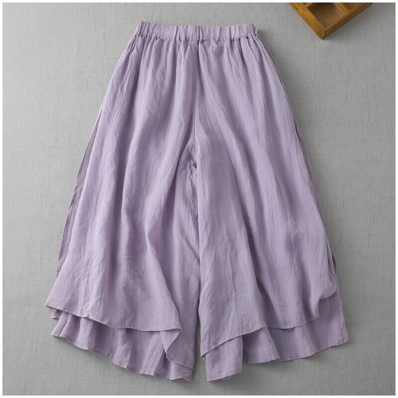 ディスカウントストアショッピングモール撤退レトロ二重層ラミーワイドレッグパンツスカートレディース弾性ウエストリネン 9 点カジュアルパンツ エラスティック 伸縮 sine57382397742