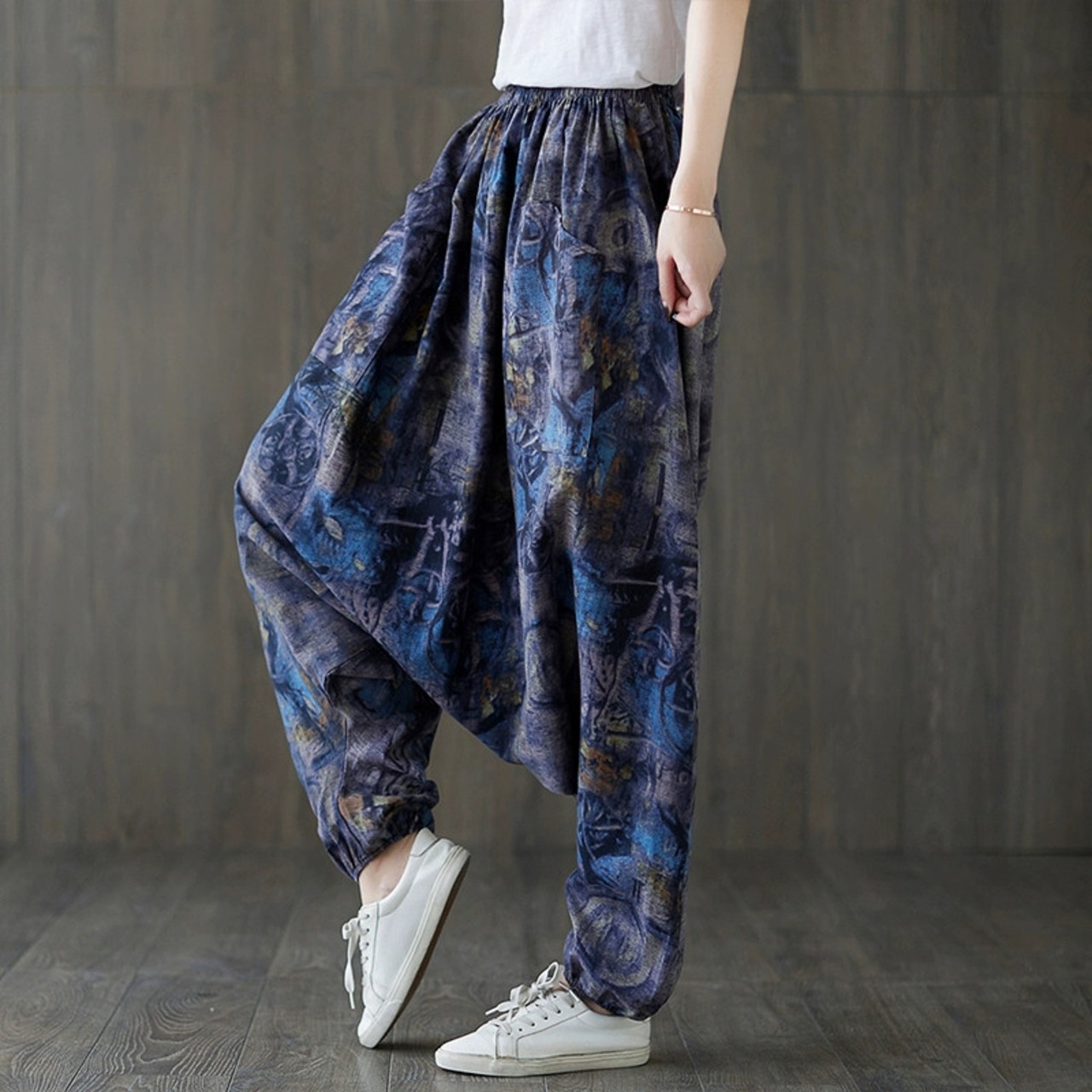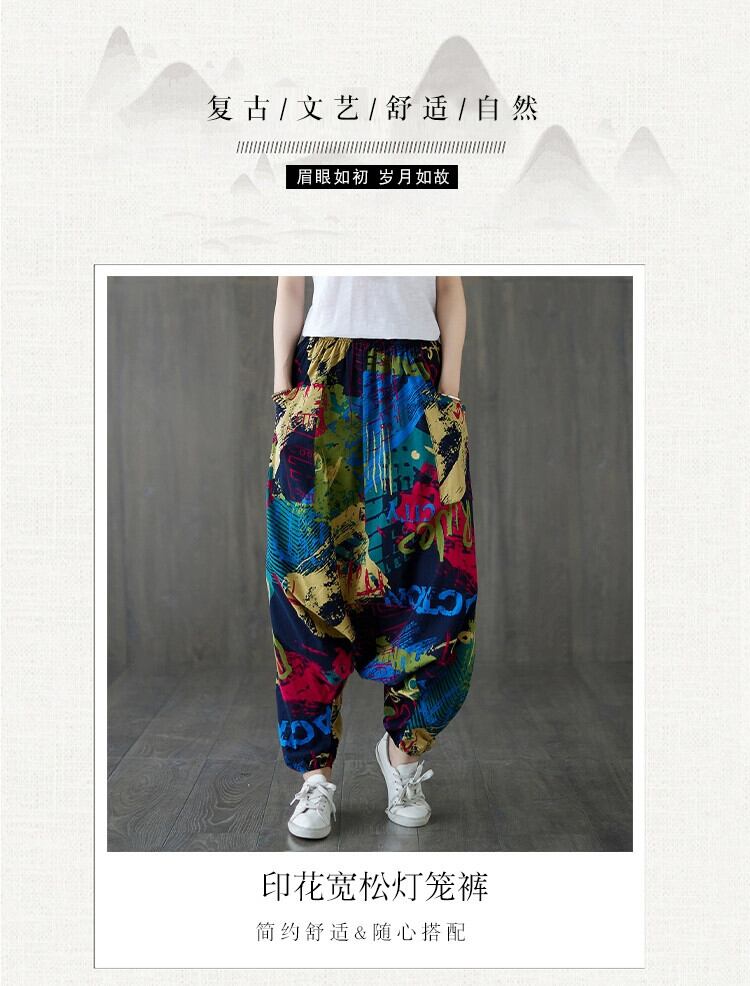 大きいサイズの女性の綿とリネンのブルマ夏 2021 新しい緩いレトロプリントだぶだぶのパンツ股カジュアルヨガハーレムパンツ コットン 大きめサイズ サマー 夏物 ショーツ ブルマー sine90968285263