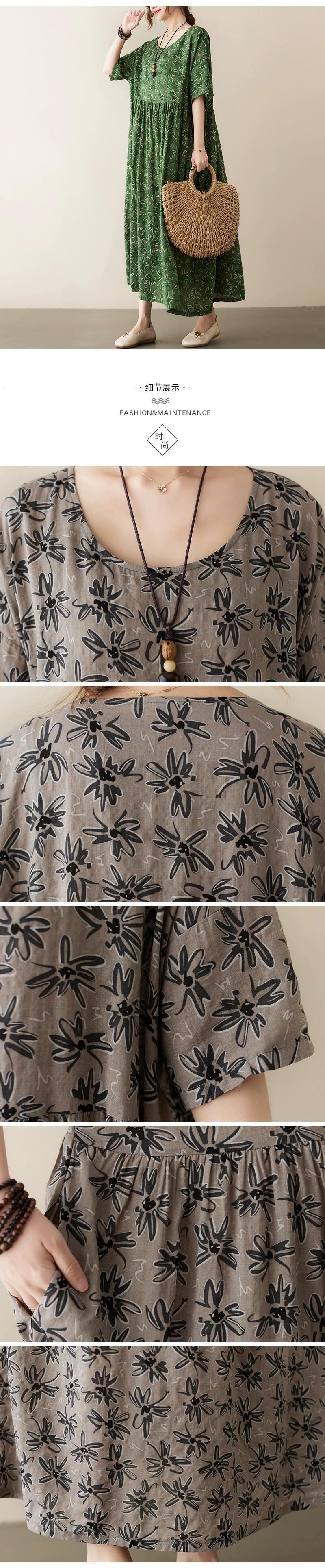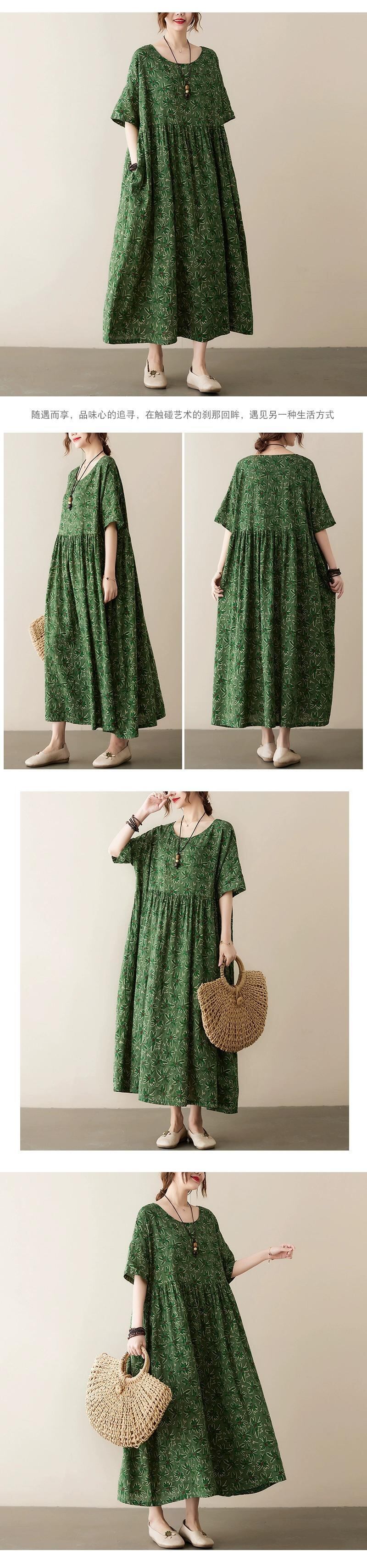 プラスサイズプラスサイズの綿とリネンのドレス夏ルースファットシスターレトロ花柄comtable通気性のあるリネンローブ コットン 大きめサイズ サマー 夏物 sine72204286001
