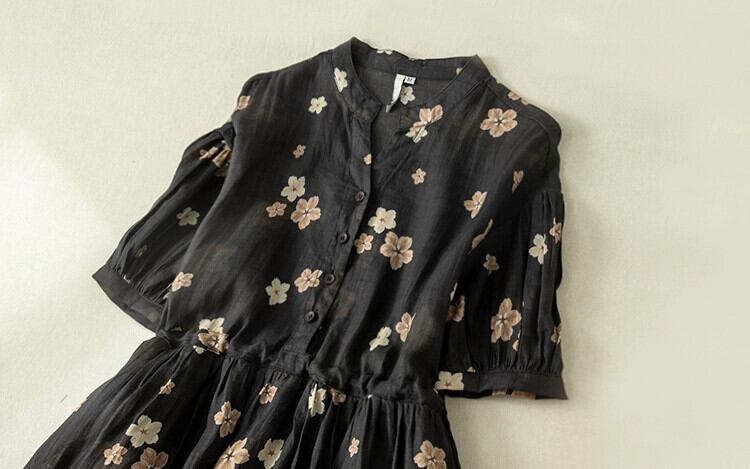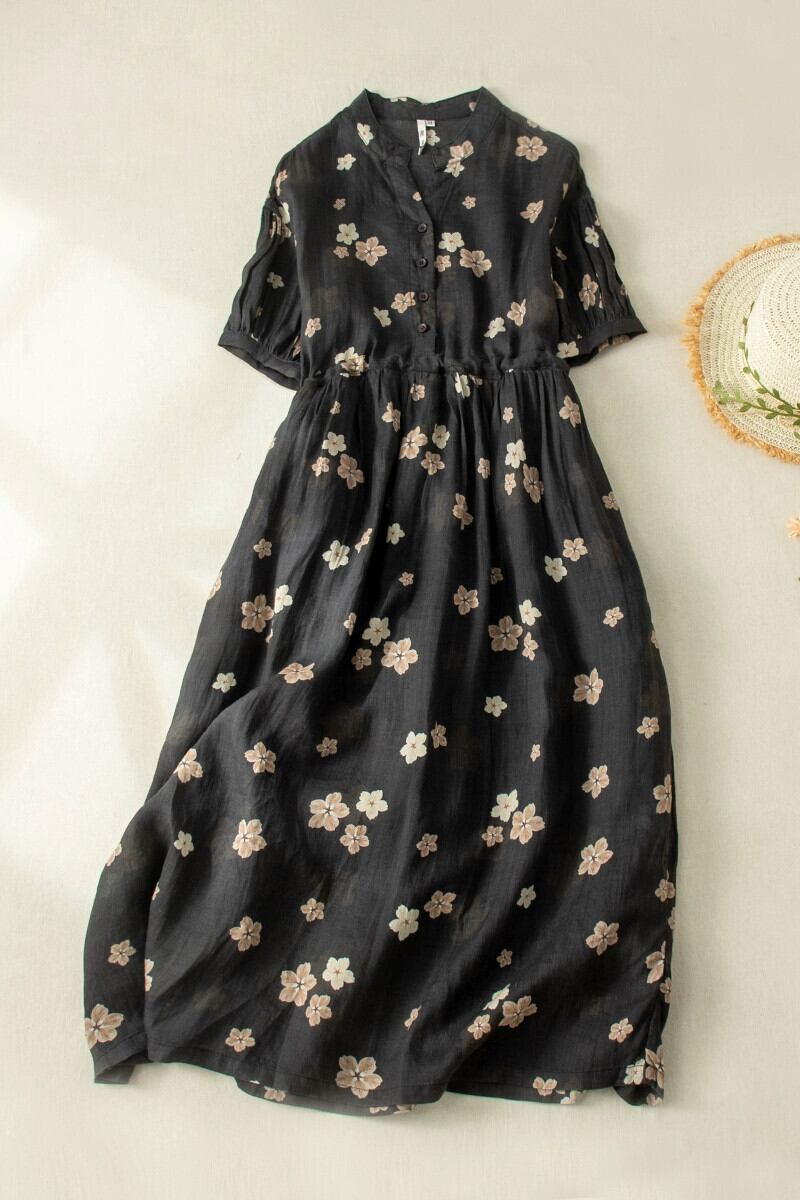 クリアランスリーク〜既製の女性用コットンとリネンの花柄半袖シャツドレス、ウエストタイとリネンのワイドスイングドレス付き sine99041643237
