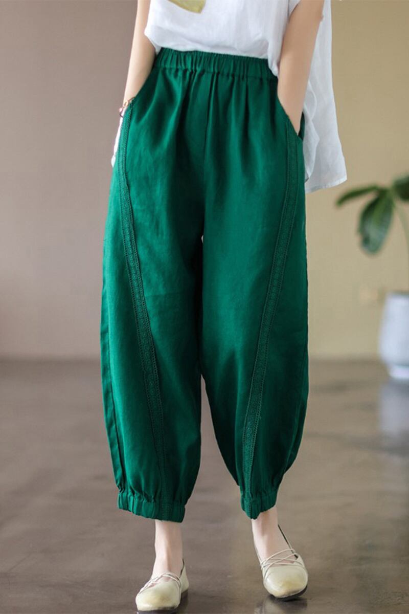 カットラベル ese オリジナルシングル綿とリネンハーレムパンツ女性ルーズレースカジュアル細い脚足首 9 点リネンブルマ コットン ショーツ ブルマー sine26392990532