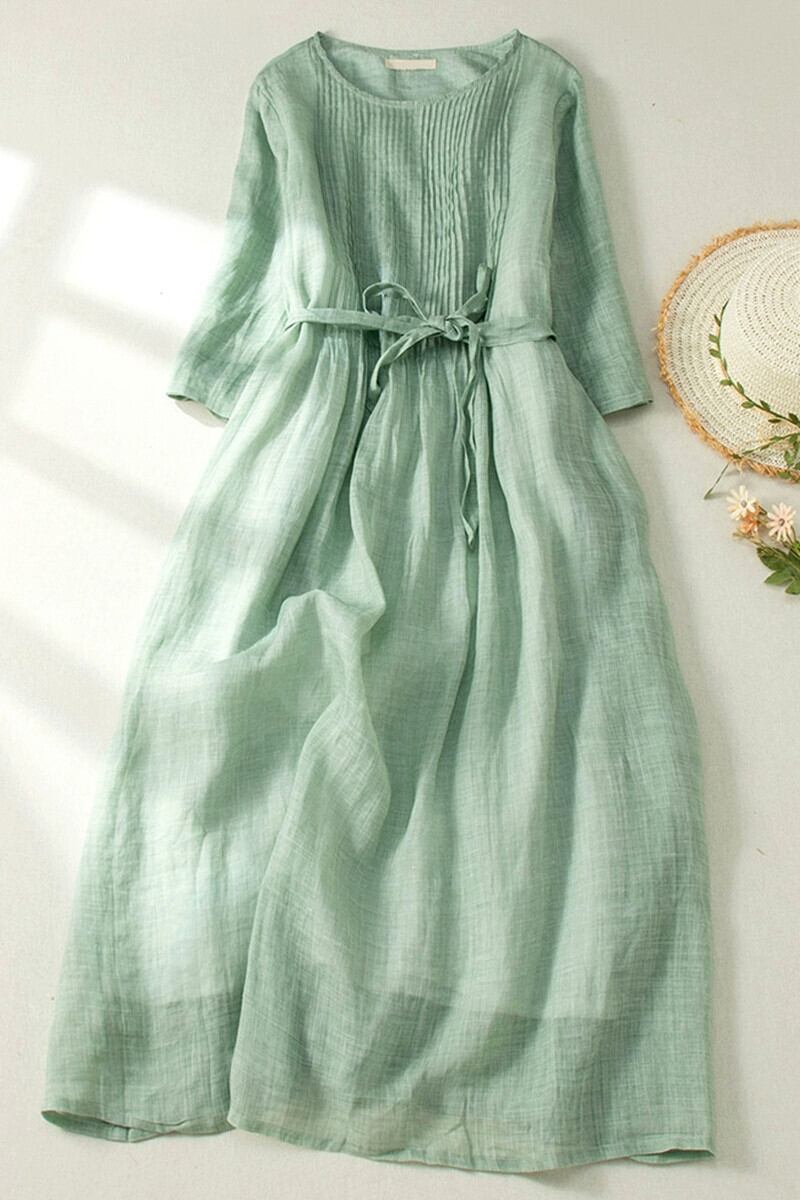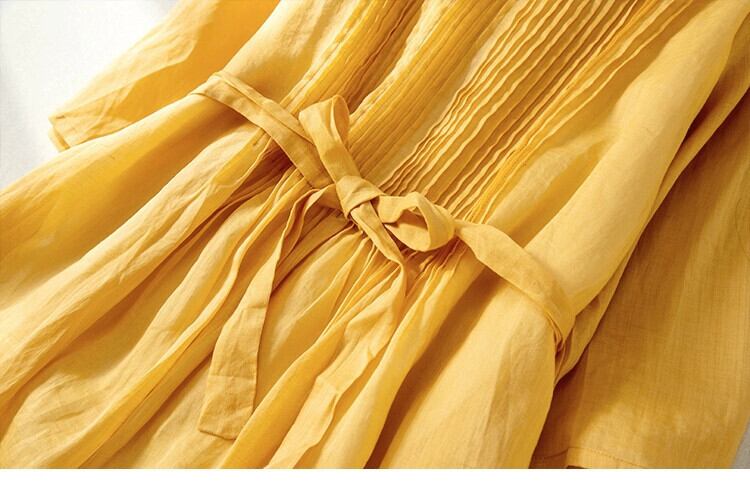 eign trade カウンターブランドテールグッズ女性 est 二層コットンとリネン半袖ドレスルーズアコーディオンプリーツリネンミドル丈スカート sine98659116960