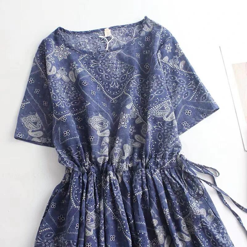クリアランスカウンター最後の在庫レディースレトロコットンとリネンプリントドレスウエストレースアップリネンロングスカート sine86673513907