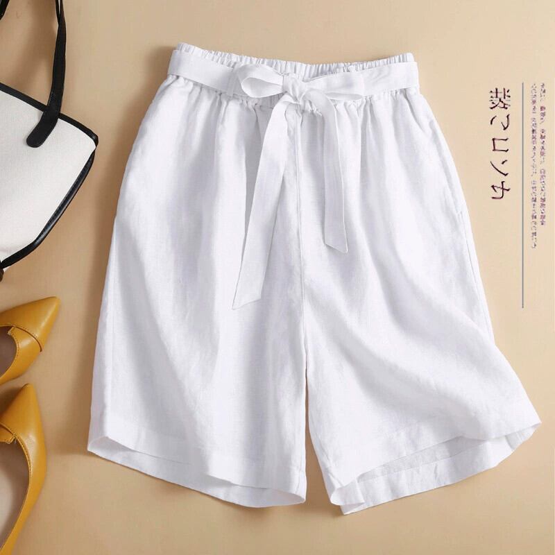 クリアランスでの受け取り、ショッピング モールの撤退、有名な独身女性の綿とリネンのカジュアル パンツ、ハイウエストのリネン ワイドレッグ ショーツ コットン ブルマー sine58877716528