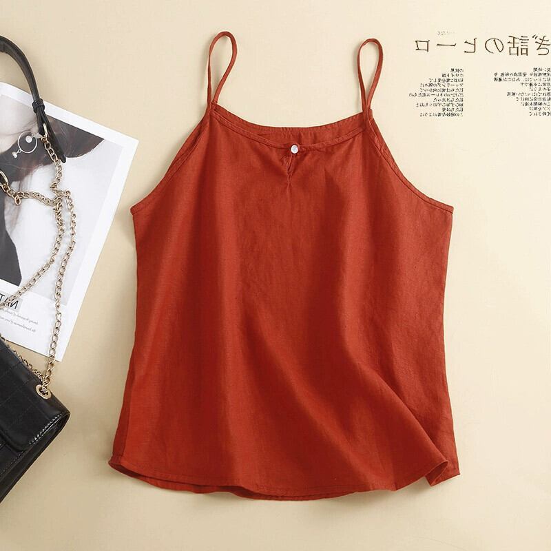 クリアランスリーク〜eseオリジナルヴィンテージラミーノースリーブインナートップレディースカジュアルルーズコットンとリネンキャミソール ビンテージ sine97417332208