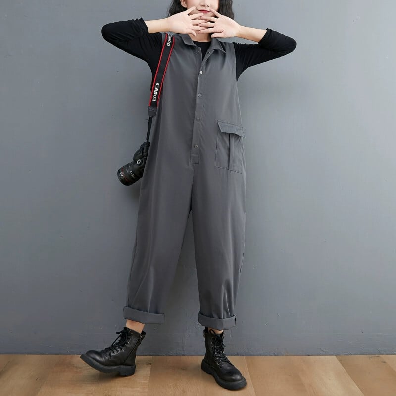 西洋スタイルのレトロなオーバーオールの女性 2021 秋と冬ルーズな大きいサイズのシンプルなオーバーオール万能カジュアルスタイルジャンプスーツ 大きめサイズ オータム 秋物 ウィンター 冬物 sine93181365362