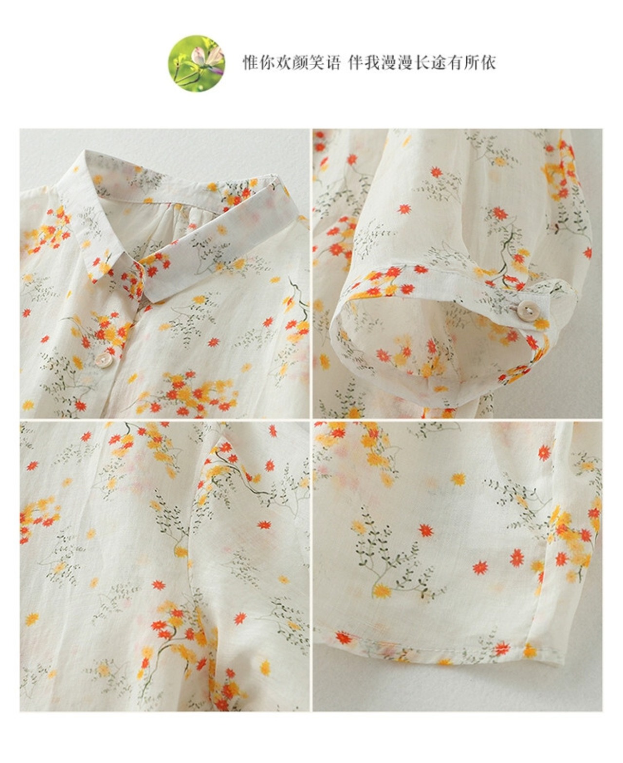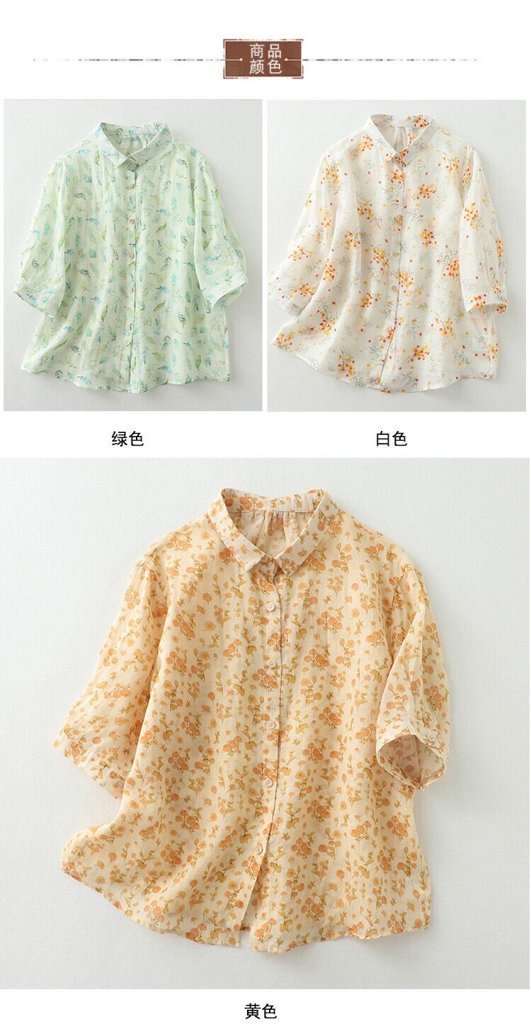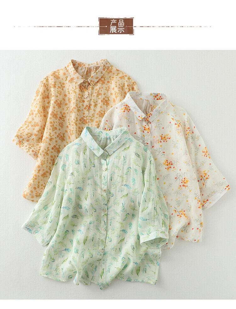 Eign Trade Export Big Tail Goods 撤退レトロラミー花柄シャツ女性のゆったりとした軽いリネンのシングルブレストトップ sine80655362151