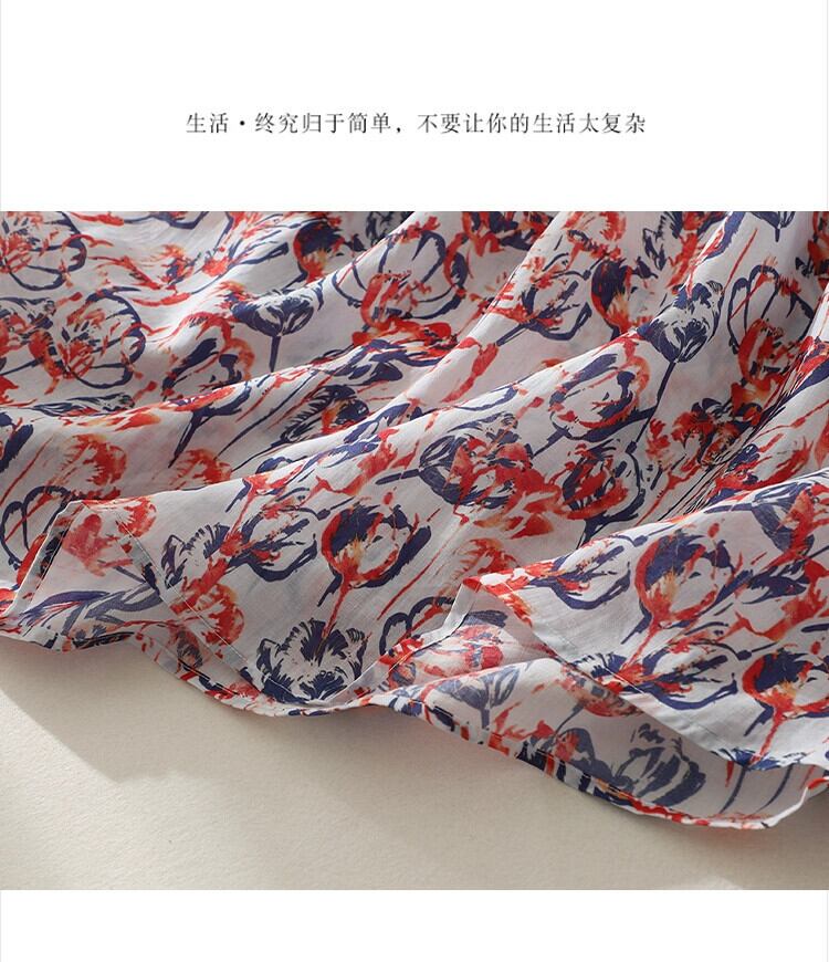 キャトルクリアランスハイエンドテールグッズレディースエストラミープリントドレスルーズウエストコットンリネンロングスカート sine84414006434