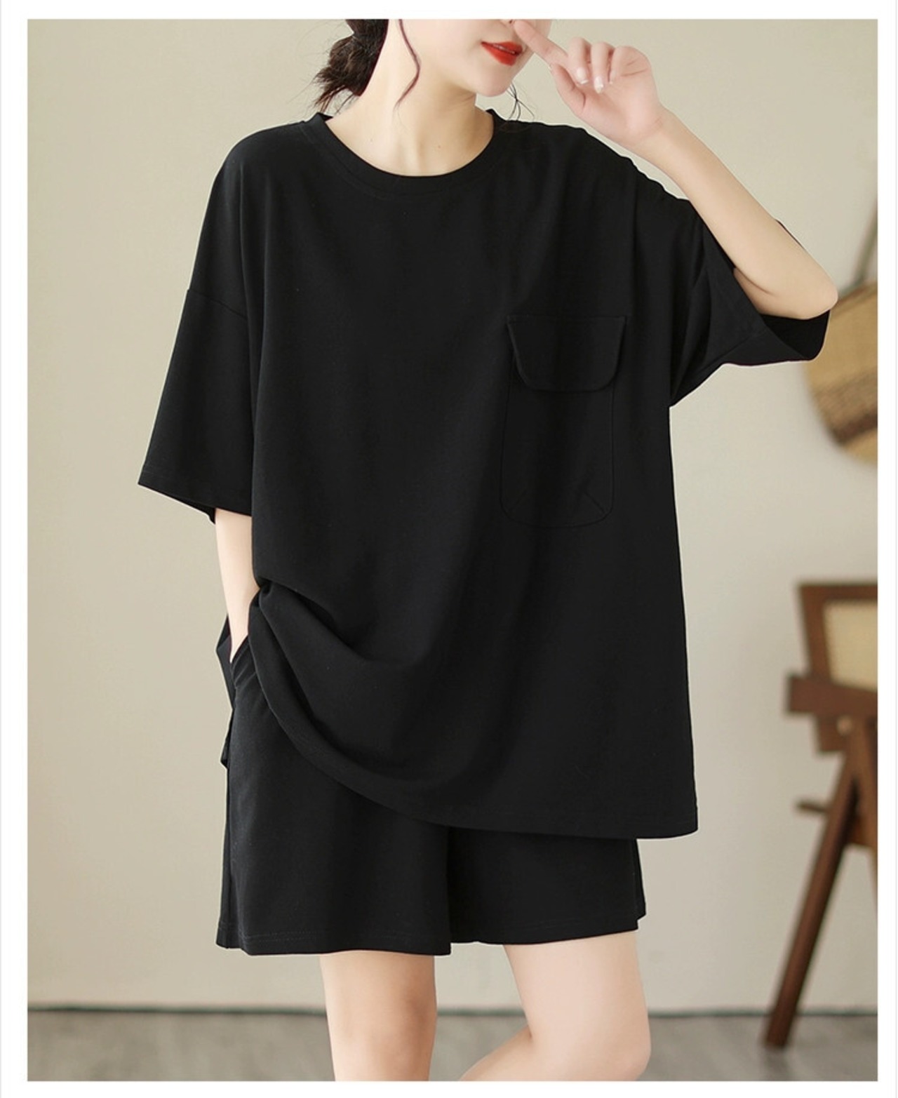クリアランスリーク ese オリジナル 大きいサイズ カジュアル ファッション スーツ レディース ゆったり 半袖 トップス カジュアル ショーツ 2 点セット 大きめサイズ ブルマー sine24864394302