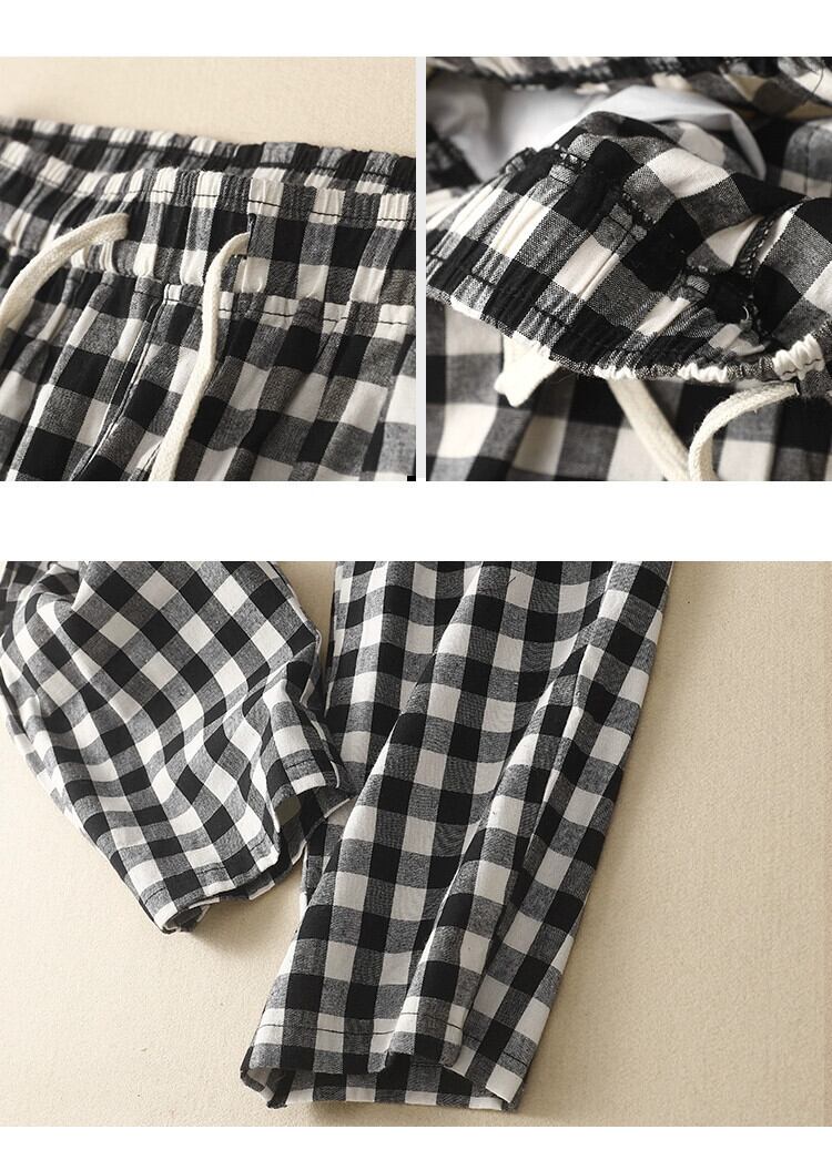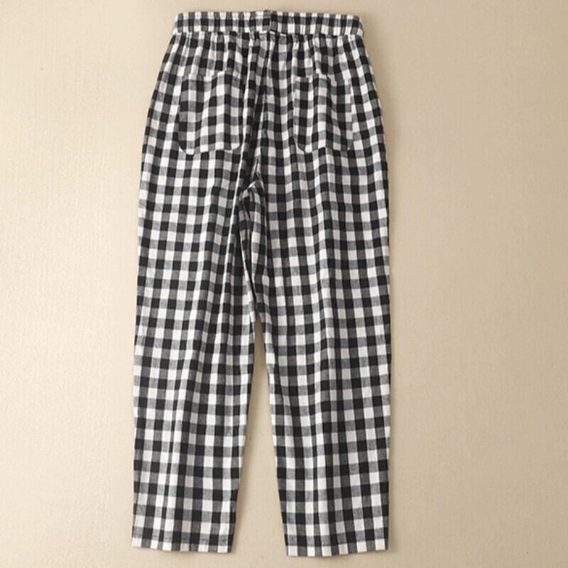 コットンとリネンのキャロットパンツ女性夏ルーズ大きいサイズ年齢を軽減するチェック柄レース弾性ウエスト小さな足カジュアルリネンハーレムパンツ エラスティック 伸縮 大きめサイズ サマー 夏物 sine37302692478