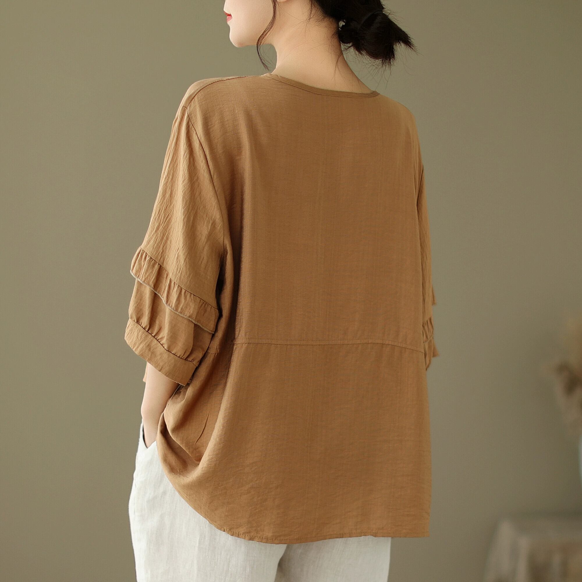 Eign Trade Export Big Tail Goods 撤退レディースレトロコットンとリネン半袖シャツ薄手のルーズカジュアルリネンシャツトップ sine3090226766