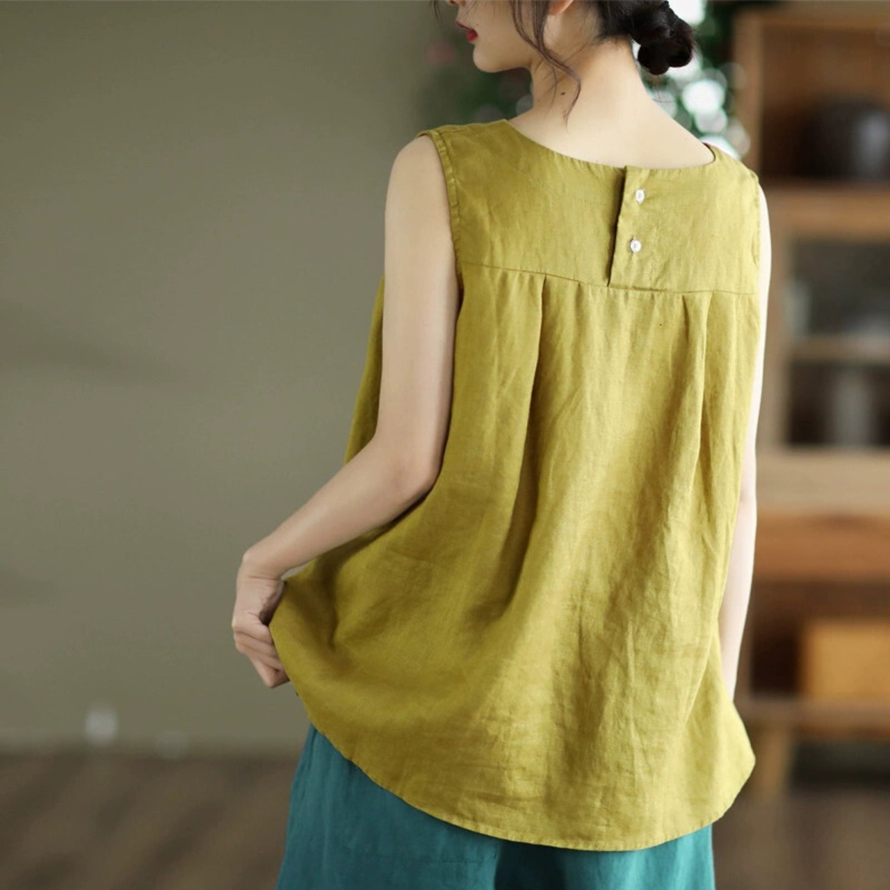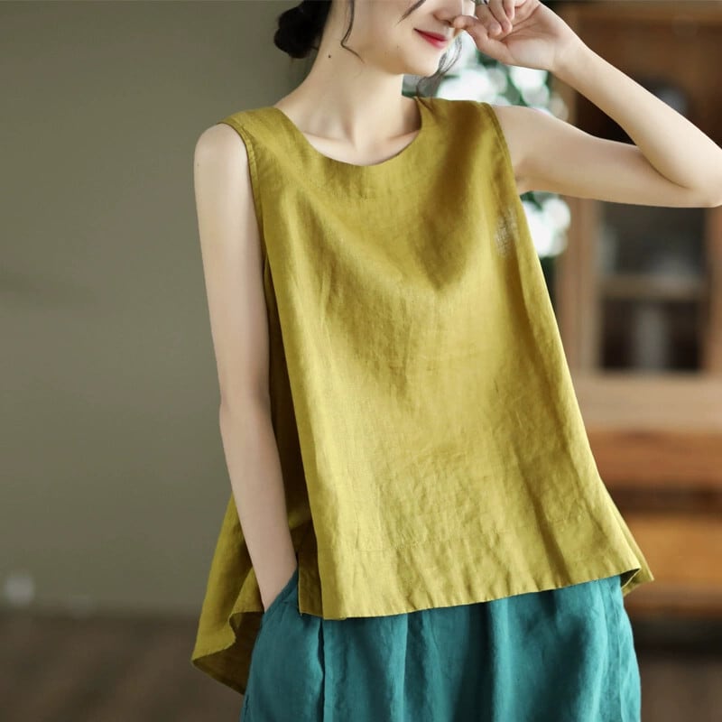 ese カットレーベル ショッピング モールの女性の綿とリネンのキャミソール、リネンの底部のノースリーブ トップが薄い、ゆったりと薄いスタイル コットン sine51452602353