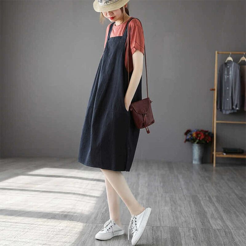 カットラベルショッピングモール除去女性の綿とリネンのドレススリムレトロカジュアルサスペンダーノースリーブサスペンダースカート コットン sine98616489293