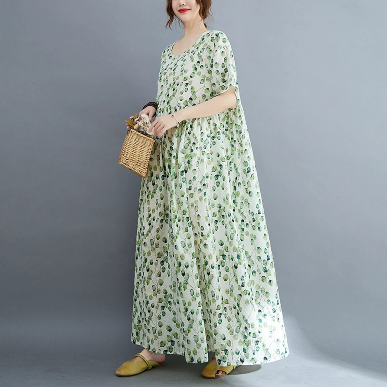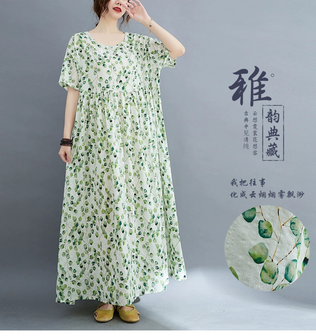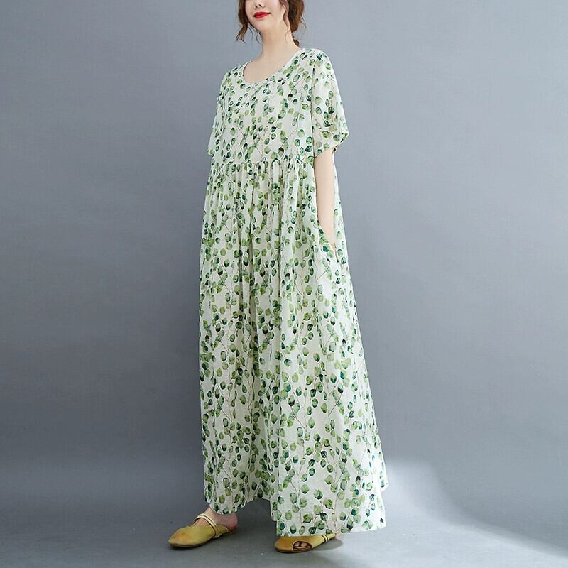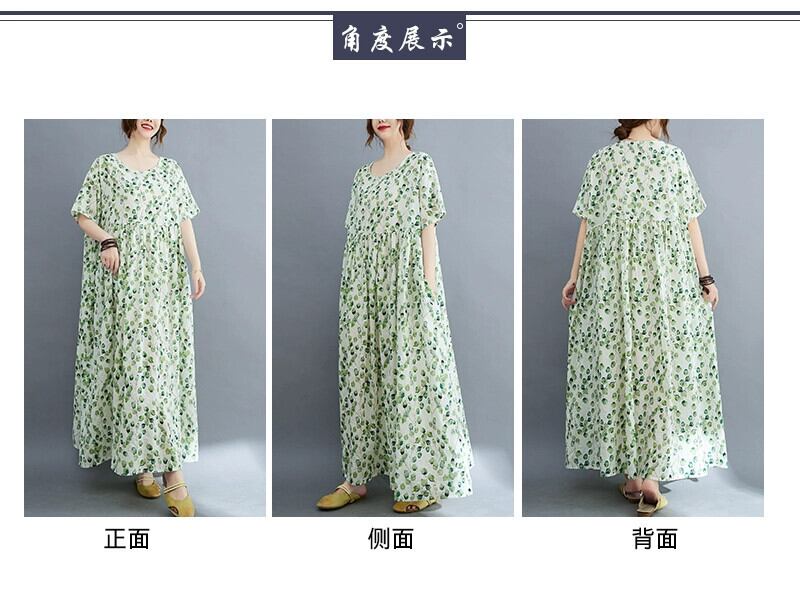 脂肪 MM プラスサイズの婦人服 2022 夏ルーズレトロ老化プリントカバー肉と痩身ビッグスイングローブ綿とリネンのドレス コットン 大きめサイズ サマー 夏物 sine77220882445