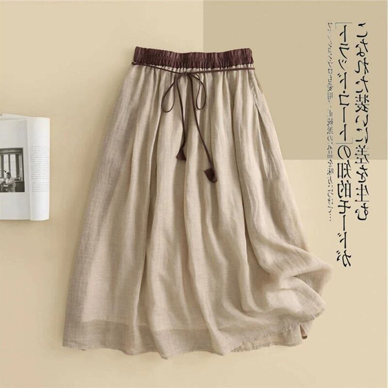 eign trade ese-style テール シングルカット レディース ビッグネーム コットンとリネン リネン スカート ゆったりとした二重層ラミー A ライン スカート 大きな裾 夏 サマー 夏物 Aライン sine46835388437