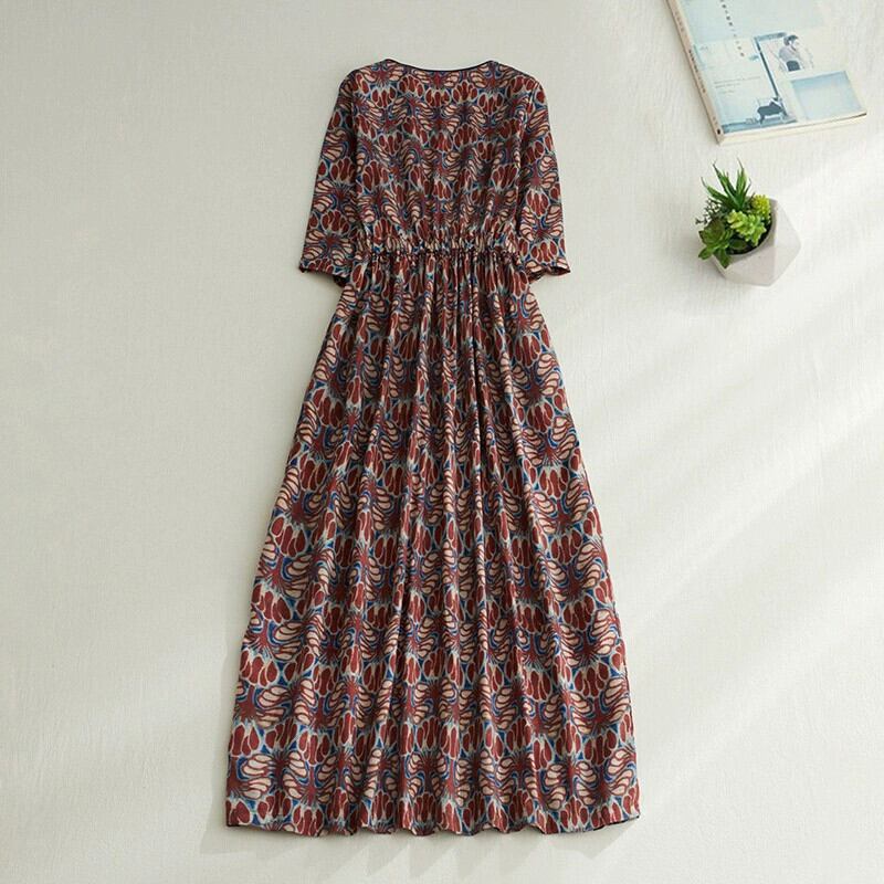 eign trade イタリアブランドテールグッズカットラベル女性のレトロな綿とリネンのドレス気質花柄大きな裾ラミーロングスカート コットン sine78567946106