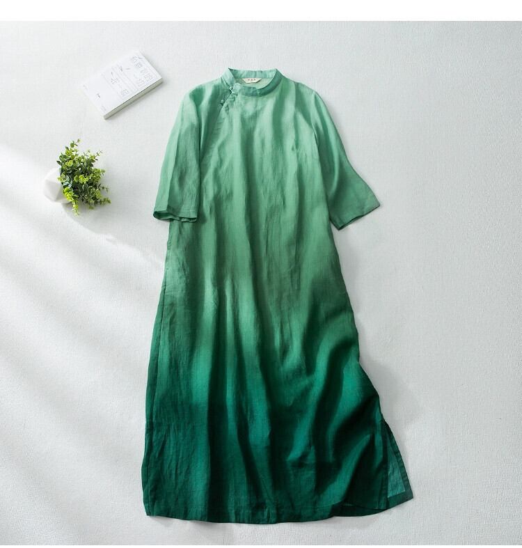 と南のオリジナルのシングルエイト貿易の有名な仕立ての女性の中国風バックルラミーチャイナロングスカートルーズコットンリネンドレス sine67144554073