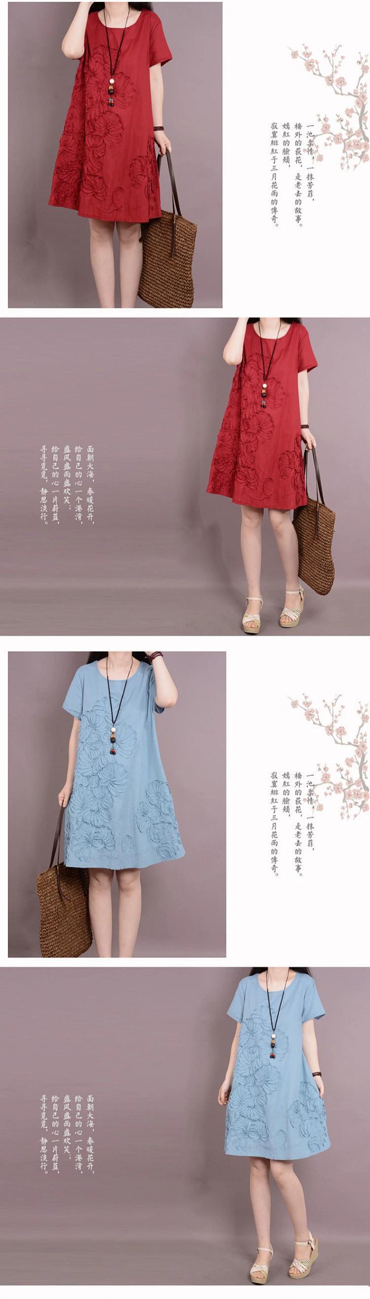 クリアランスリーク〜コットンとリネンのドレスの女性の夏ルーズスリミング芸術的な薄い刺繍半袖リネンボトムスミッドレングススカート レッド サマー 夏物 sine22939367856