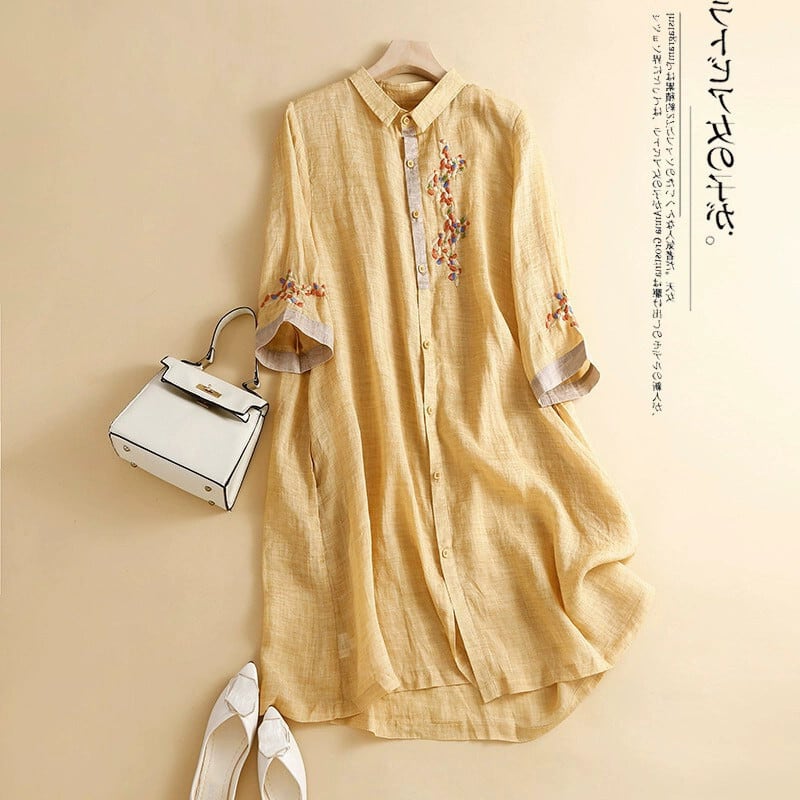 eign trade ese オリジナルの有名ブランドカットの女性のレトロなコットンとリネンのドレスルーズ刺繍リネンミッドレングスシャツスカート レッド sine36169464264