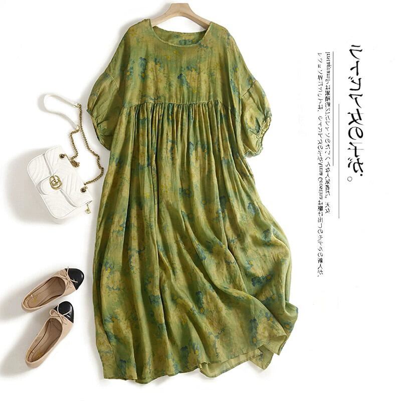 eign trade カウンターから撤去されたイタリアのブランド、フェミニンなラミーのロングスカート、夏のゆったりとしたプリントのコットンとリネンのドレス サマー 夏物 sine10052180266