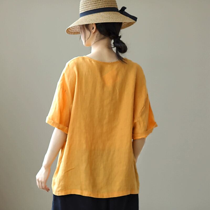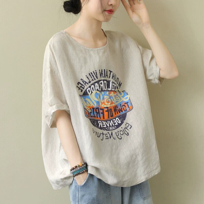 ディスカウントショッピングモールクリアランスレディースルーズリネン薄手トップ芸術的プリントカジュアルコットンとリネン半袖Tシャツ sine91762216668
