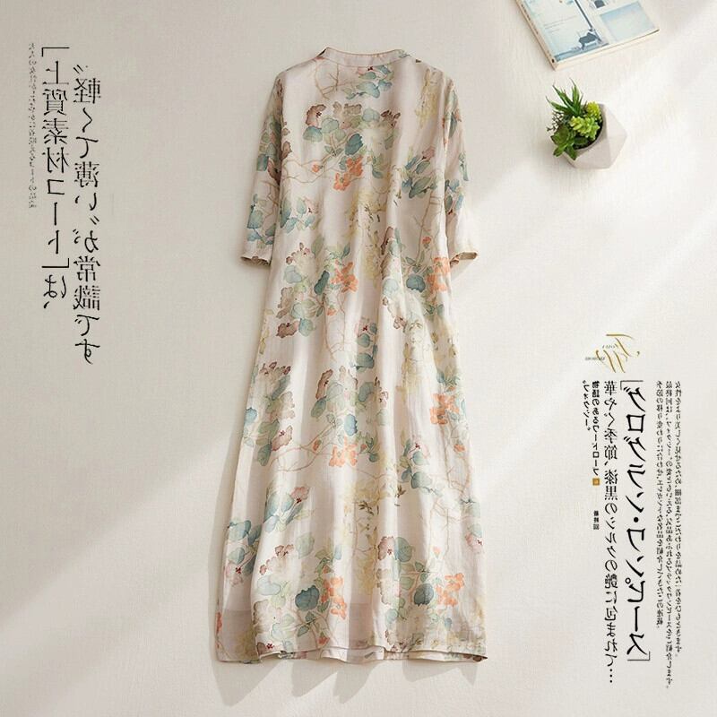 ディスカウントストアショッピングモールカウンターから撤収されたシングル女性の修正されたチャイナドレスロングドレスルーズレトロプリントコットンとリネンのドレス sine2780495171