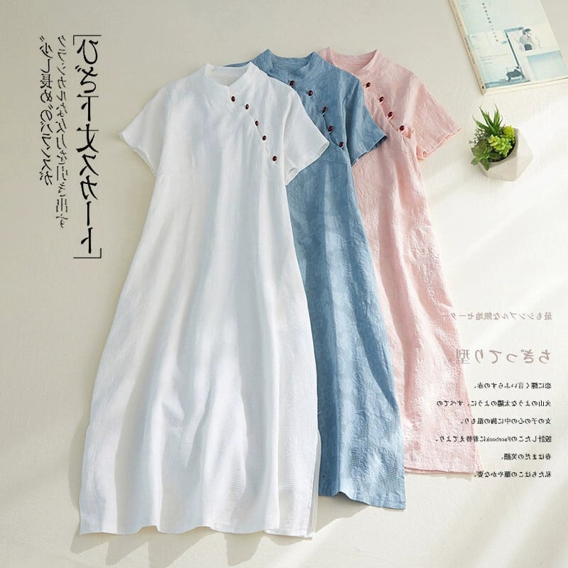 Eign Trade Export Big-Name カットテール シングル 女性用 コットンとリネン 半袖ドレス カジュアル レトロ 改良されたラミー チャイナドレス sine75008649987