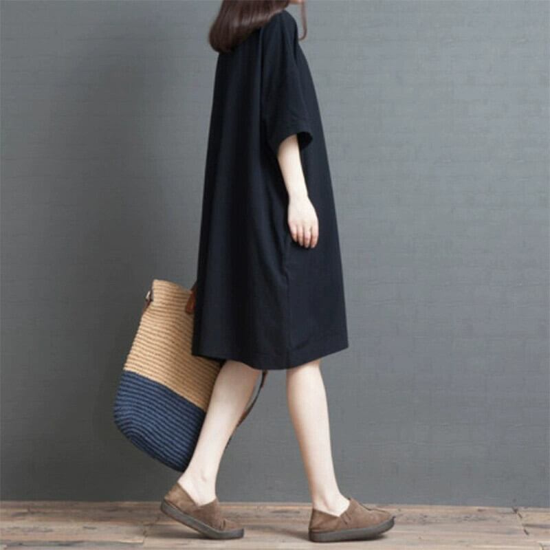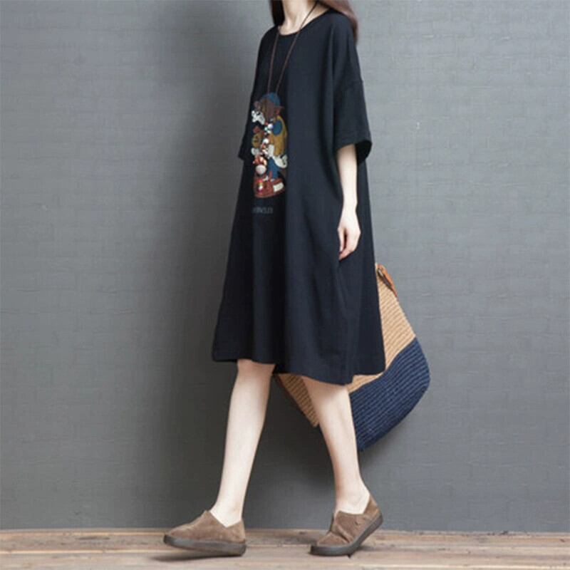 ese とオリジナル eign trade 有名な女性のプリントミッドレングスカジュアル a ラインスカート大きいサイズの純粋な綿半袖ドレス コットン 大きめサイズ Aライン ピュア sine32355272069