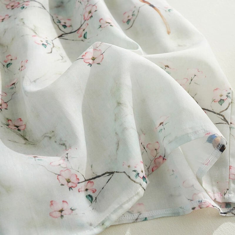 クリアランスリーク〜eseオリジナルスタイルのレトロなコットンとリネンのドレス、ゆったりとスリムなスタンドカラープリントラミーロングスカート sine57971554324