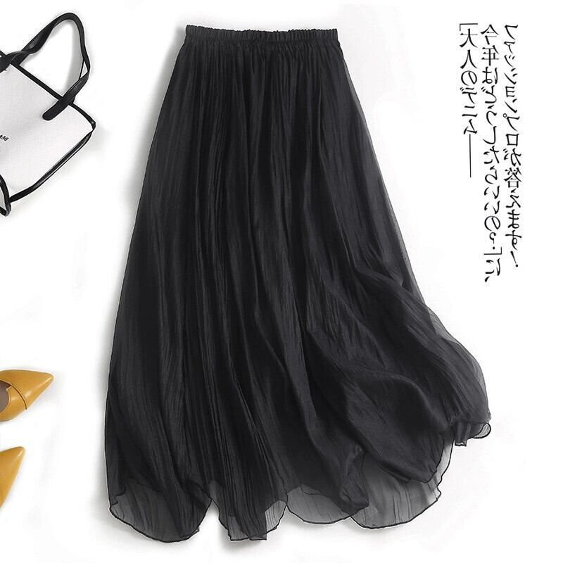 第一線のブランド eign trade オーダーメイドの女性の綿とリネンのハイウエストスカート気質二層ラミー A ラインスカート夏 コットン サマー 夏物 Aライン sine22975293788