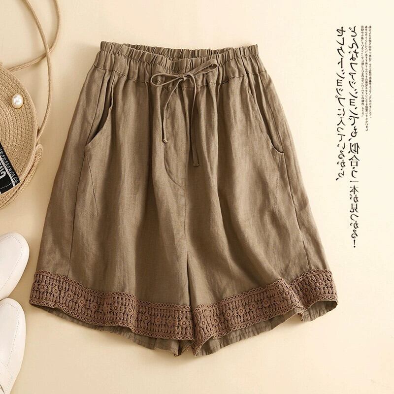 eign trade ese ブランド テールグッズ カットレーベル レディース ハイウエスト 綿麻 ストレート ショーツ ルーズレース レースリネン ワイドパンツ コットン ブルマー sine97070249191