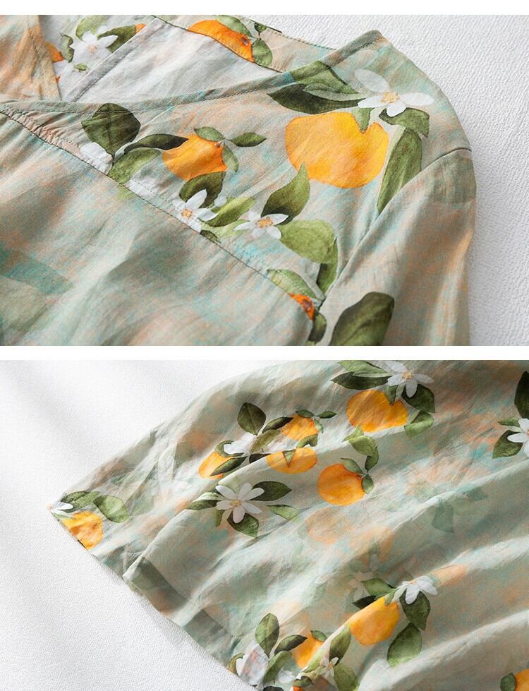 クリアランスリーク〜 ese オリジナルシングル花柄ラミーローブロングスカートカジュアル気質プリント V ネックコットンとリネンのドレスの女性 Vネック sine8193788398