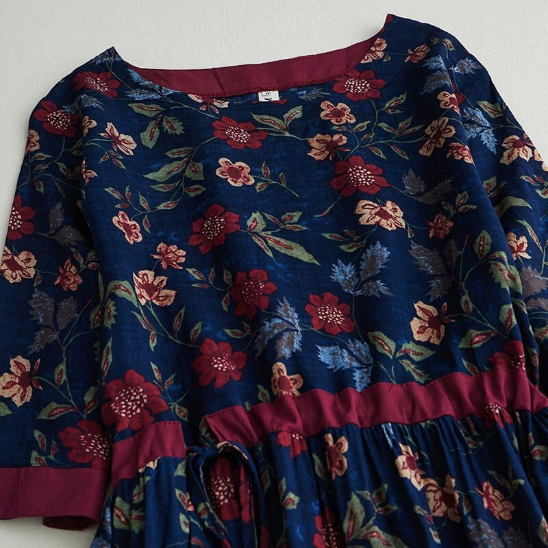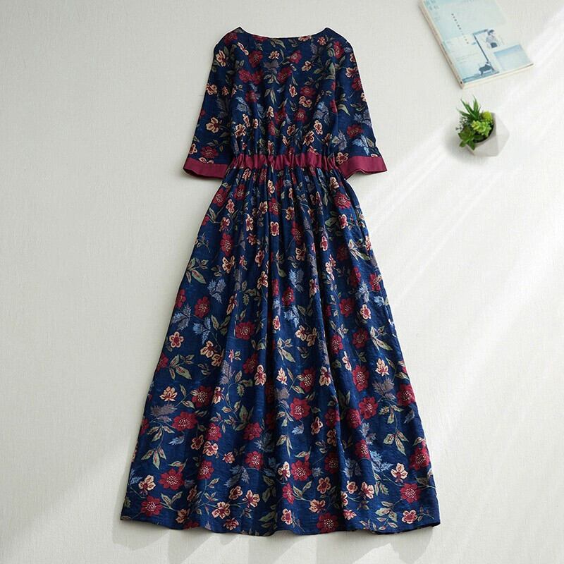 ディスカウントストアショッピングモールの女性の綿とリネン半袖ドレスルーズレトロプリント大きな裾ラミーロングスカート夏 コットン サマー 夏物 sine40604691993