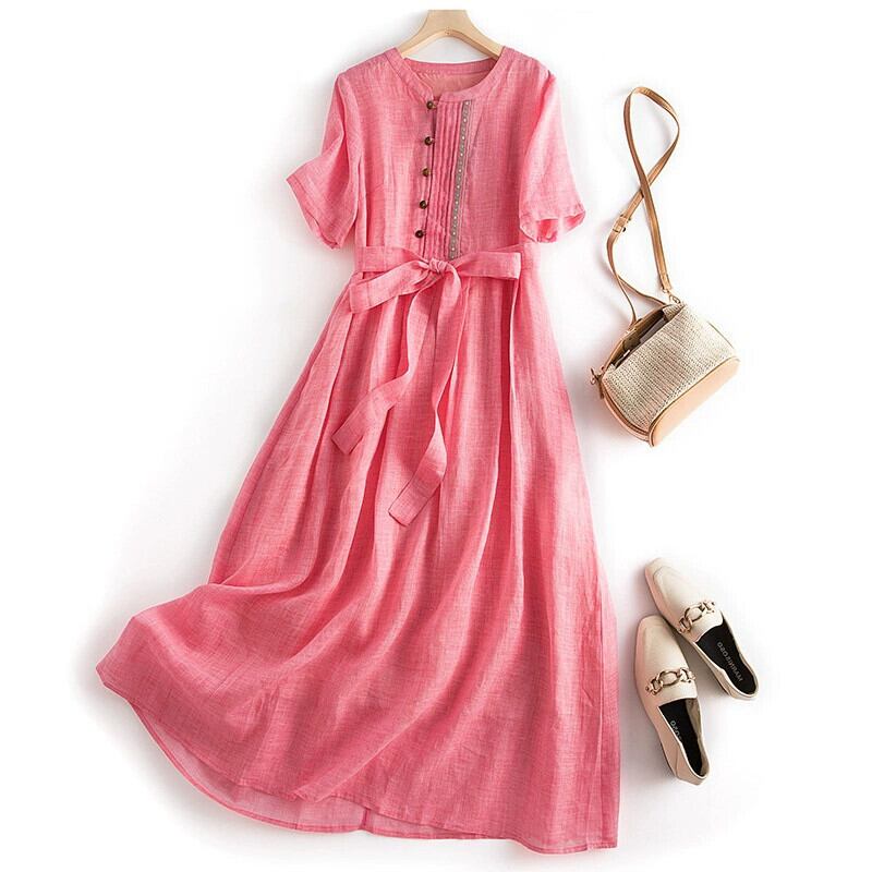eign trade カウンターから撤退したフランスのブランド、フェミニンなラミーのロングスカート、ウエストのゆったりとしたレースアップのコットンとリネンのドレス sine63554298404