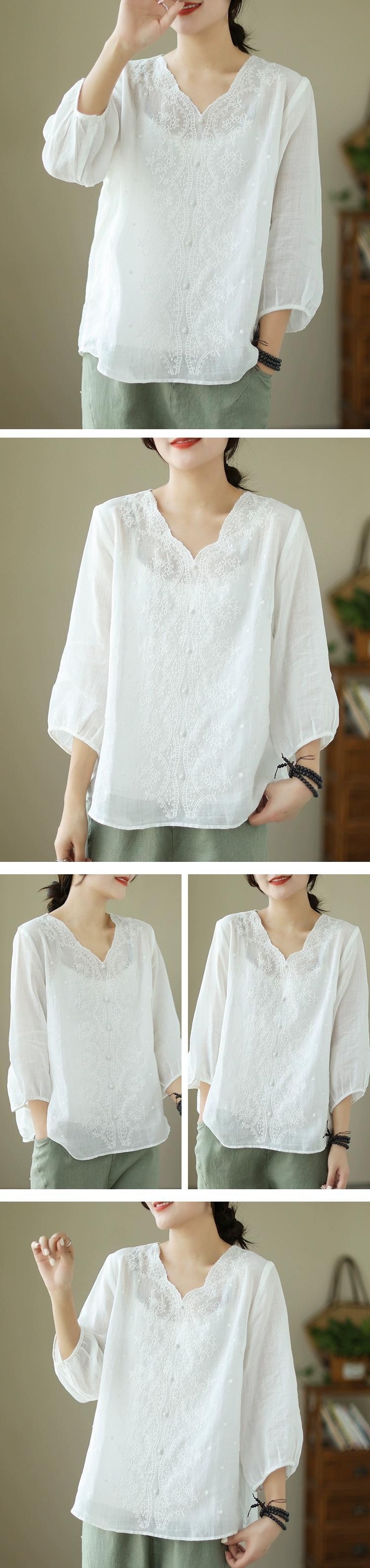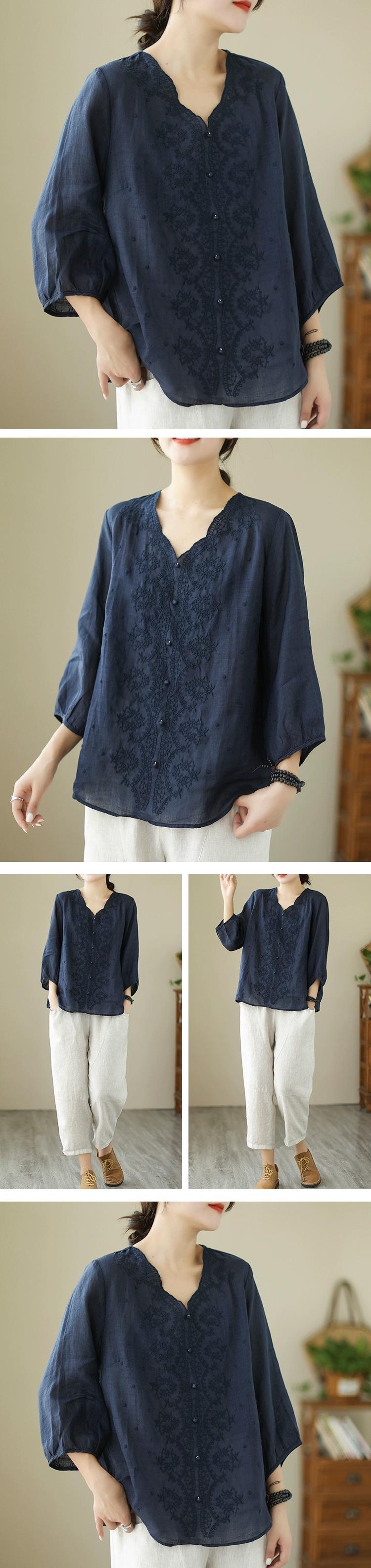ese とオリジナルのシングル eign trade ビッグネームテールグッズレディースレトロ刺繍ラミー長袖 T シャツルーズでスリムな V ネック綿とリネンのシャツ ロング レッド コットン Vネック Tシャツ sine89061955239