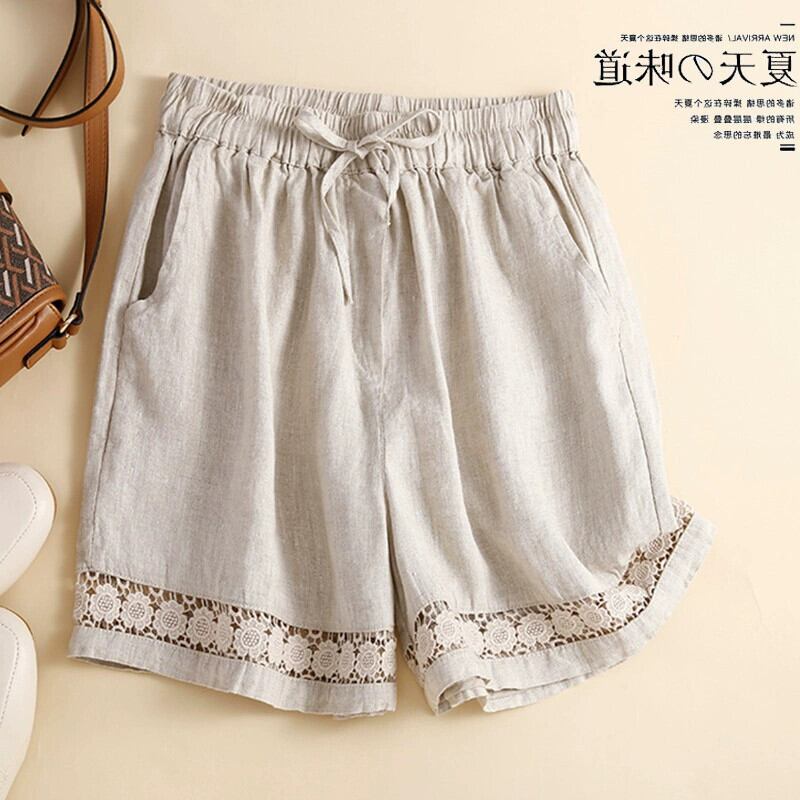 貿易輸出の大物独身女性用クリアランス ハイウエスト中空レースコットンとリネンのワイドレッグパンツルーズリネンの七分丈ショーツ ブルマー sine81540038770